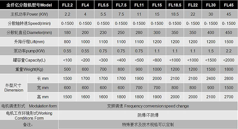 攪拌、分散時空氣吸留少,混合與調勻功效佳,用中或高速攪拌,分散可使物料迅速溶解,顆粒變小。穩定可靠,操作維護簡單;生產連續性強,對物料可進行快速分散和溶解,分散作用好,生產效率高,運轉平穩,安裝簡便。針對不同物料的粘度及處理量有不同的功率及型號。