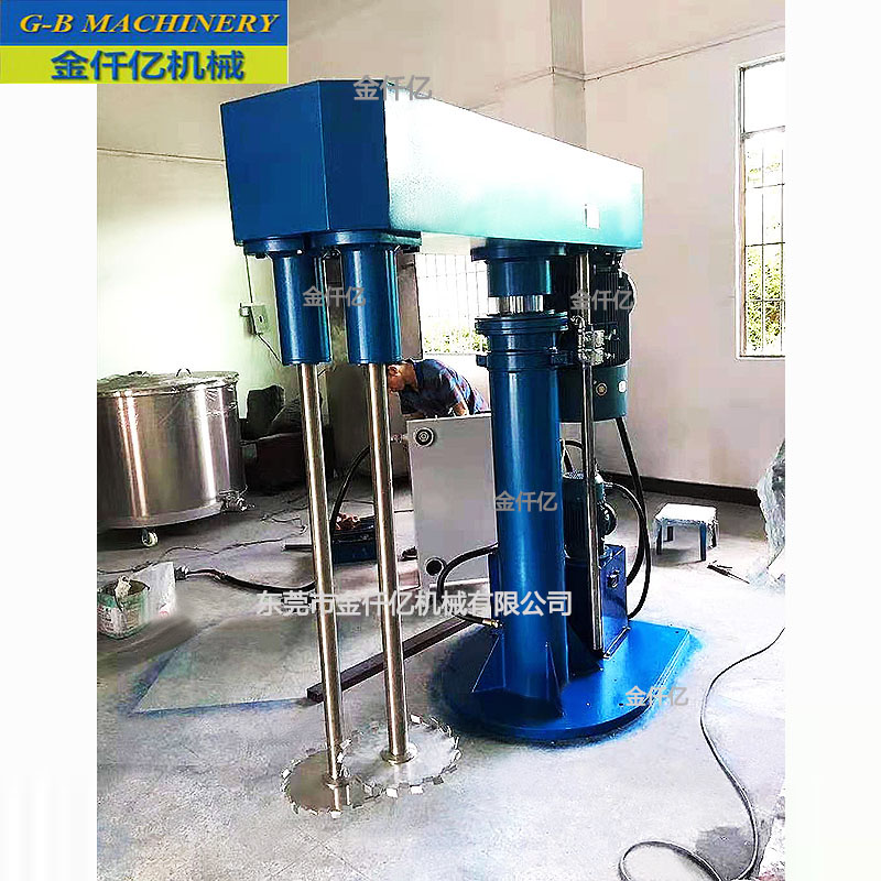 雙軸高速分散機,采用國內外高質材料,設計新穎,運行平穩,方便實用。該機由液壓系統、主傳動、攪拌系統、導向機構、電控箱五部分組成,各部分結構緊湊、合理。分散盤型式:平盤鋸齒式。