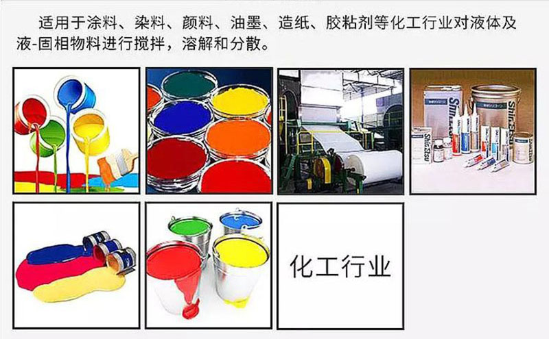 攪拌、分散時空氣吸留少,混合與調勻功效佳,用中或高速攪拌,分散可使物料迅速溶解,顆粒變小。穩定可靠,操作維護簡單;生產連續性強,對物料可進行快速分散和溶解,分散作用好,生產效率高,運轉平穩,安裝簡便。針對不同物料的粘度及處理量有不同的功率及型號。