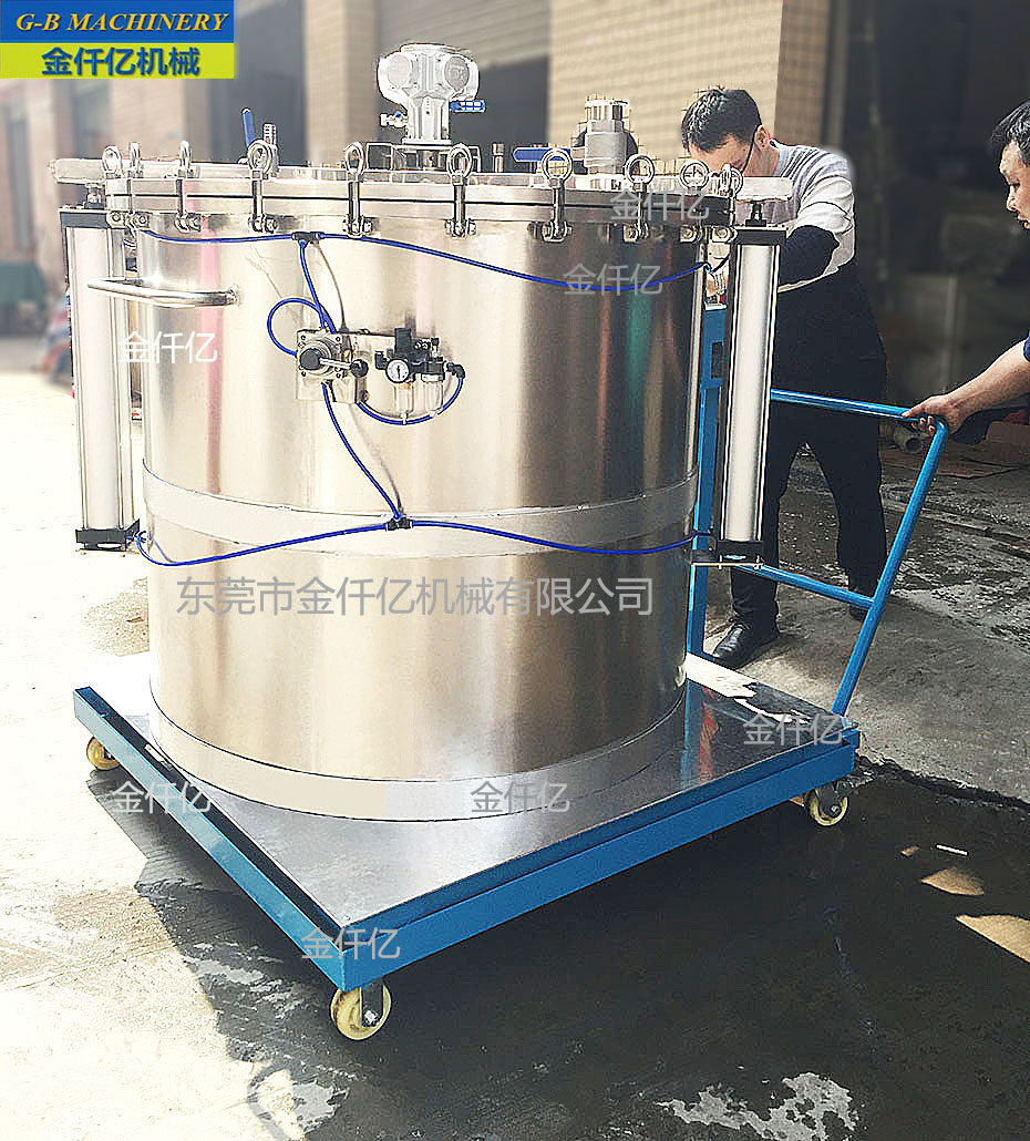 此款攪拌罐為氣動馬達(dá),密封蓋子,帶電子稱重系統(tǒng),可隨時顯示攪拌罐物料重量。
